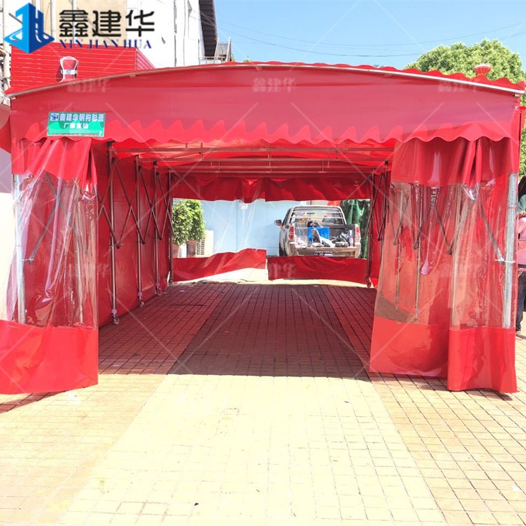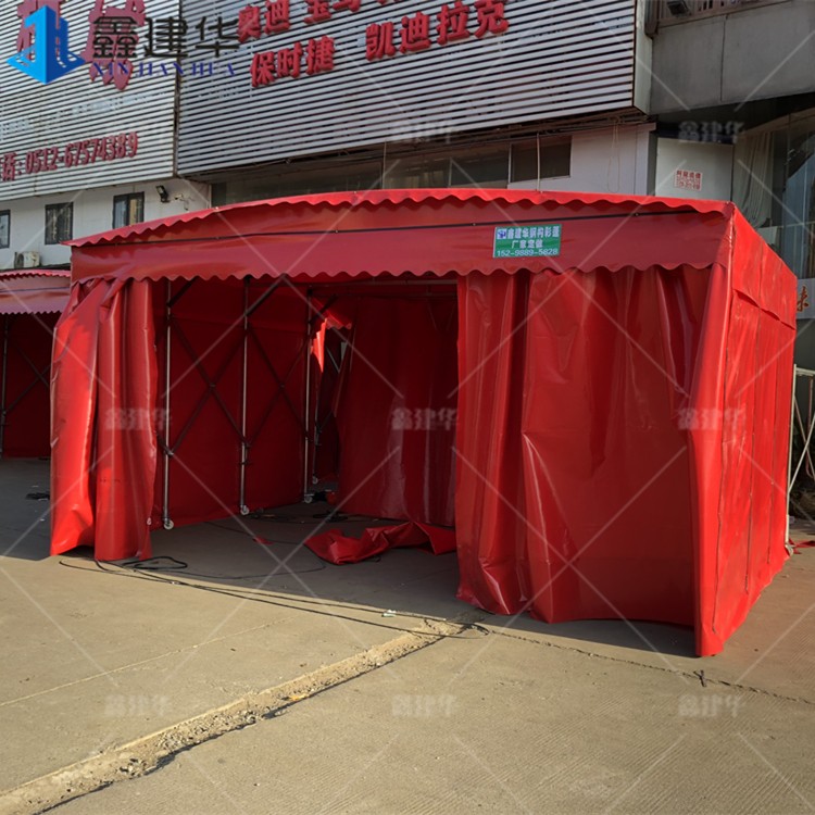 濟南室外電動伸縮雨棚 鋼結構移動推拉篷廠家定制
